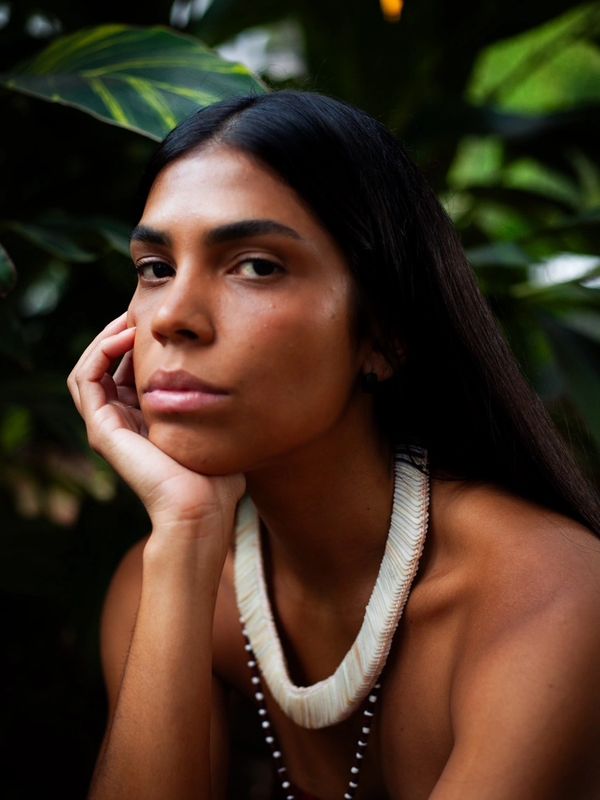 Artista indígena, descendente do povo Tupinambá, nascida e criada na Cidade Baixa, periferia de Salvador (BA). Atualmente mora em São Paulo e mantém viva a ponte entre a selva de pedra e seu estado natal. Vem construindo sua trajetória profissional com trabalhos como atriz, modelo e roteirista / diretora criativa de projetos autorais, se destacando na criação de conteúdo digital.